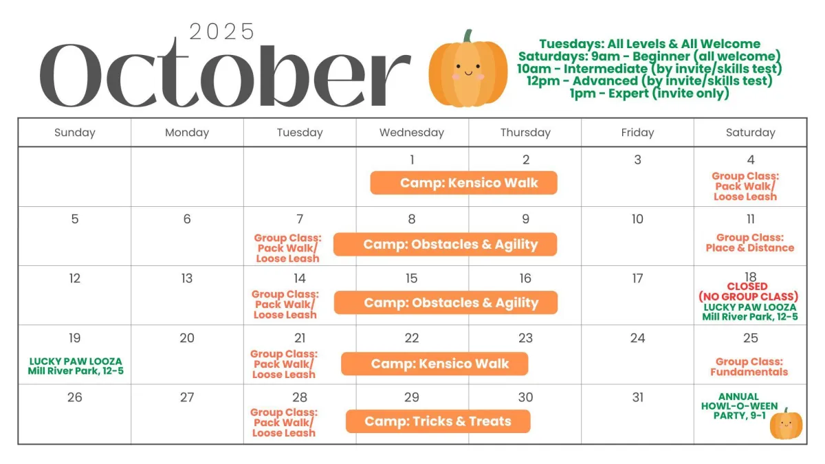 Spend the day with our trainers practicing skills, tackling fun challenges, and going on field trips to places like the park or coffee shop. It’s a great way to keep training fresh and skills sharp!