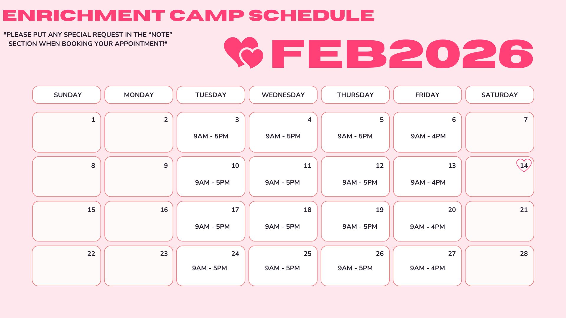 Stay tuned for exciting updates to our Enrichment Camp experience! If you have any questions about camp activities, please reach out to our training team, Neil, or Jamie!